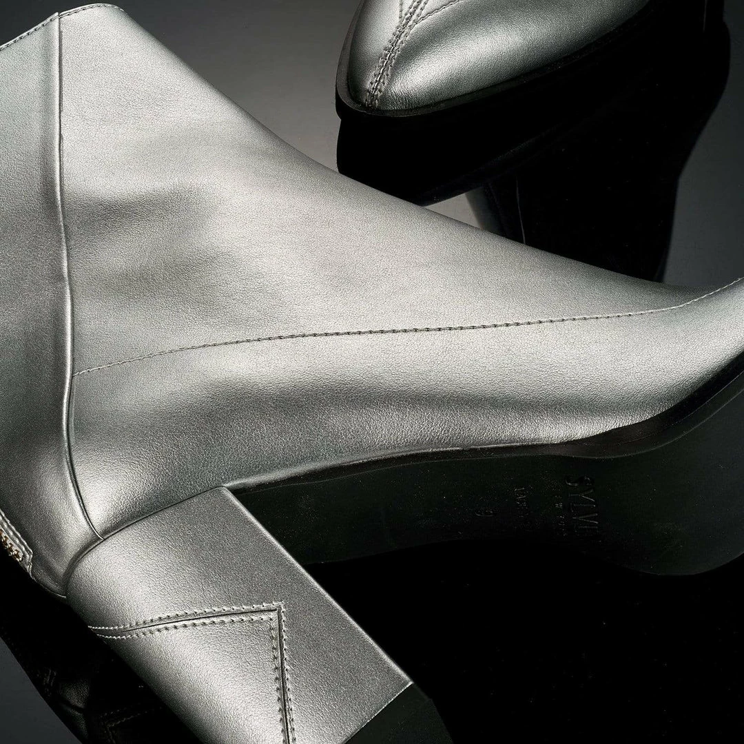 Using aluminium minerals for that perfect shine, these standout ankle booties are perfect for holiday dressing or pair them with classic jeans and a tee for an ever-so-slight bit of everyday glam.