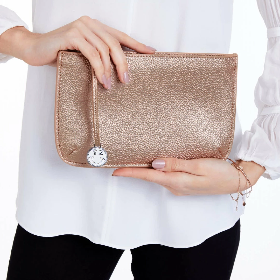 The ultimate styling and practical accessory when you only need to carry essentials. This clever clutch can be used as an evening accessory or as a wallet. There is a secure inside zip to hold your bank cards. The main section of the clutch leaves plenty of room for other personal items. The clutch strap allows you to hold your champagne glass while remaining hands-free to shake hands.