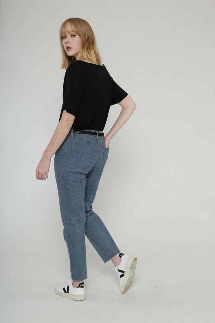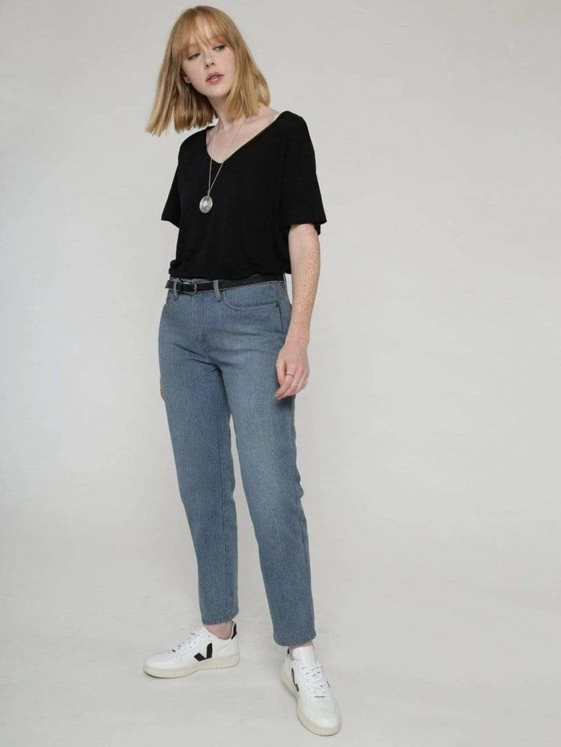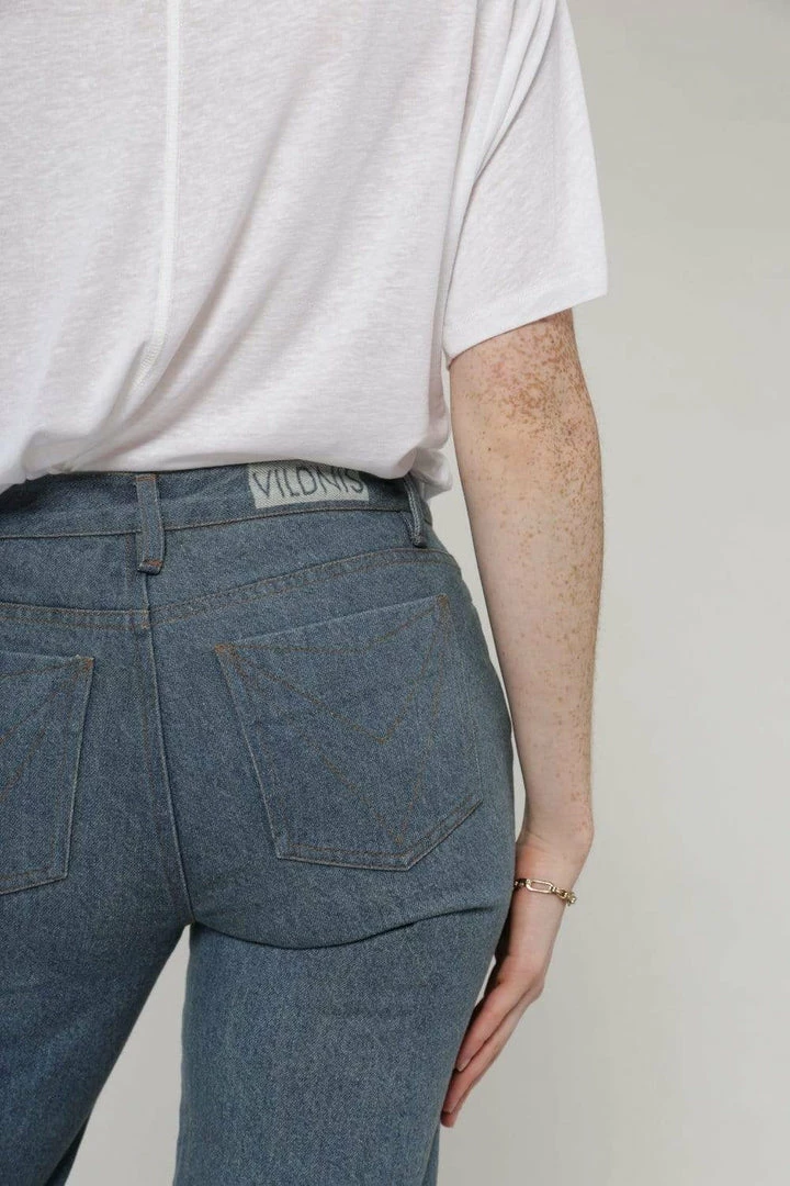 Relaxed fit boyfriend jeans you’ll want to live in every weekend. Classic five-pocket style with VILDNIS’ signature stitching on the back pockets, laser printed logo patch on waistband and gunmetal hardware.