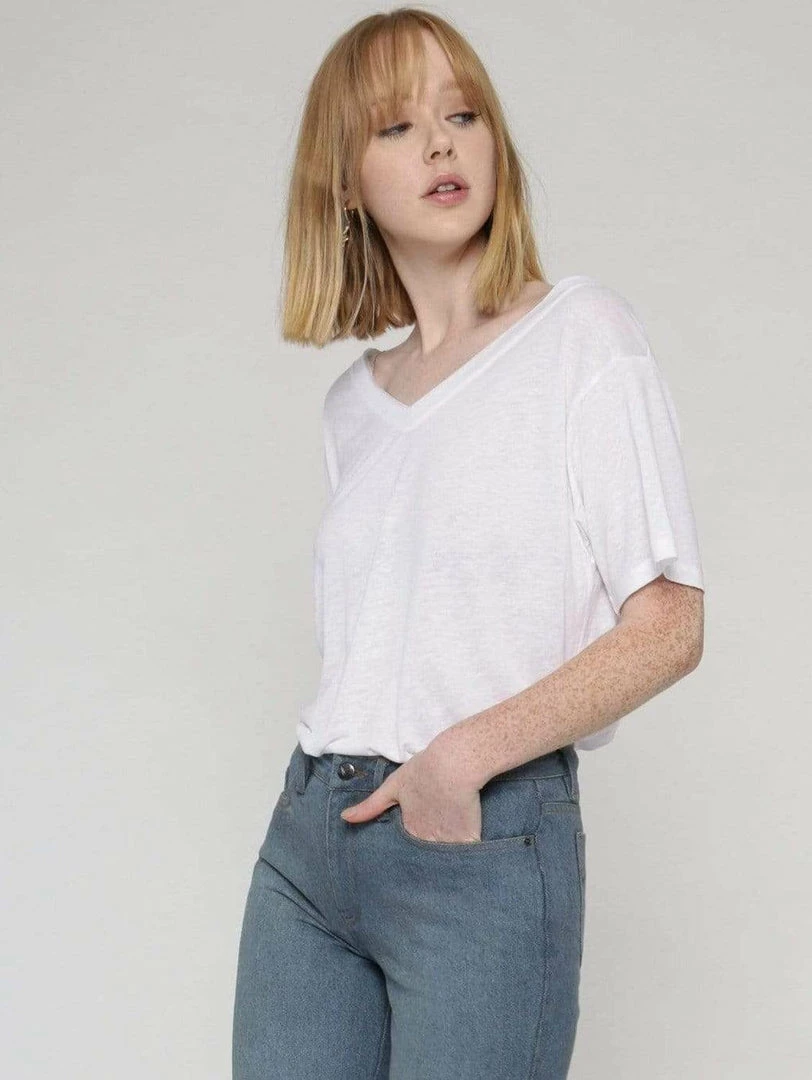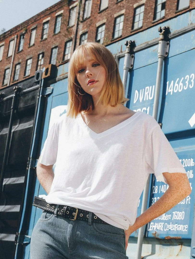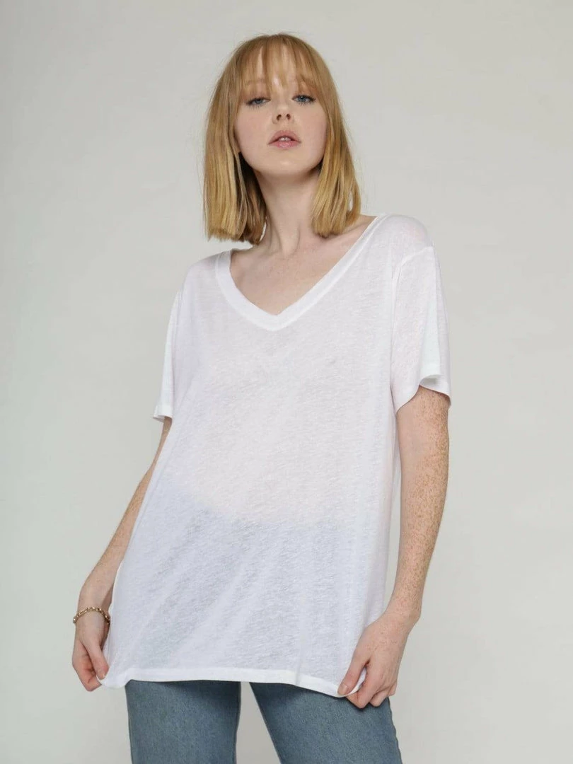 Made from an organic linen/lyocell blend, the over-size Waimea T-shirt feels liberatingly light and has a laid-back draped fit accentuated with a wide V-neck, dropped shoulders and sleeves. VILDNIS’ trademark unpolished aesthetic is evident in the centre-back stitching and split rib detail on the neckline.