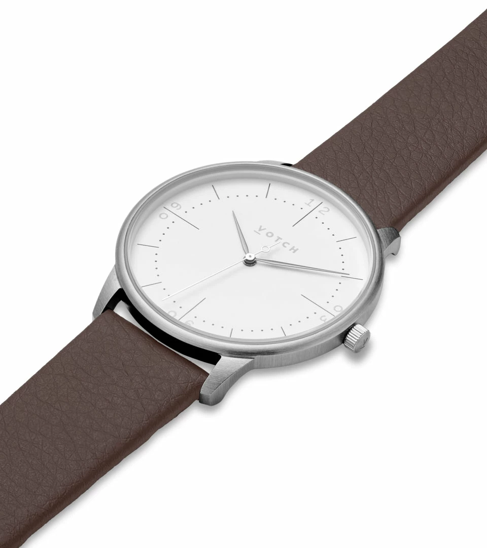 The Aalto range elevates cruelty free style to a whole new level. Nautical design combined with minimalist features creates the perfect timepiece for every occasion. Each watch has a 40mm case in Votch’s signature brushed finish that will arrive to you in its own eco friendly pouch and box.