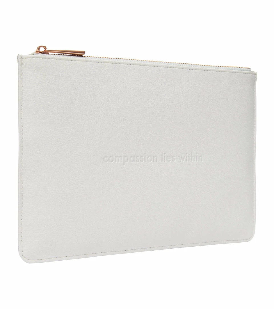 Elegant and sophisticated, Votch’s ‘compassion lies within’ essentials pouch is crafted from 100% cruelty-free AppleSkin vegan leather combined with a lining made from recycled plastic bottles.