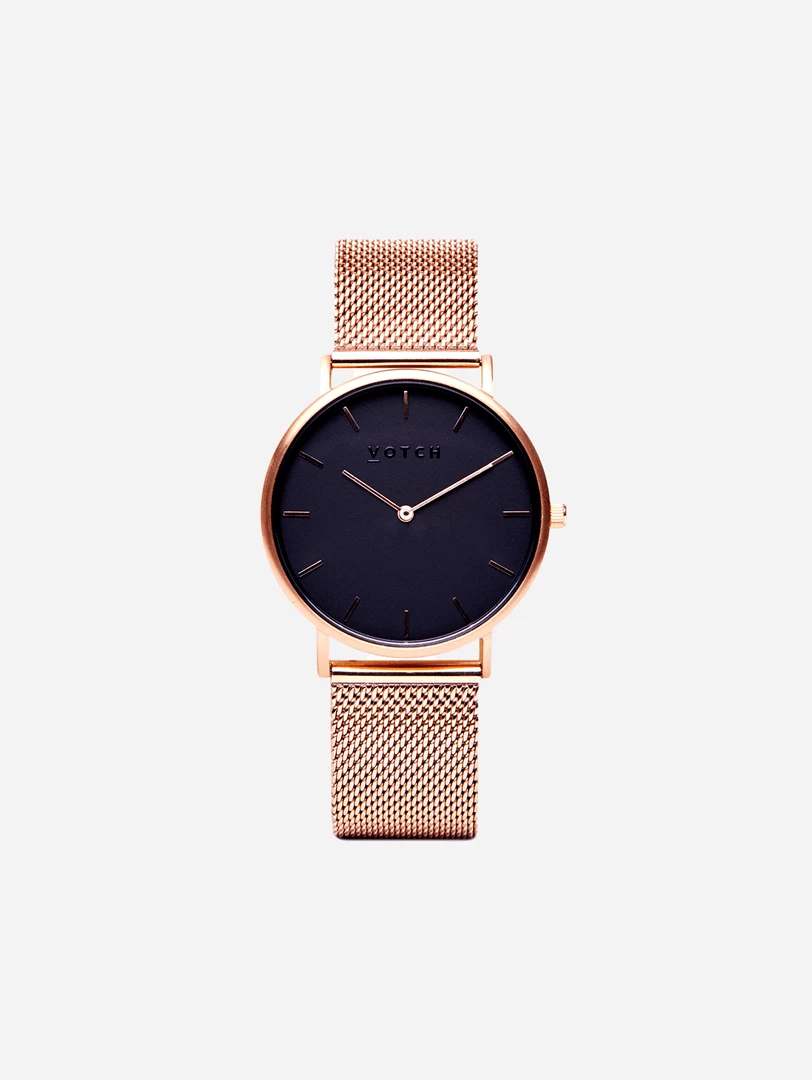 The stunning contemporary mesh Votch is a classically striking timepiece with soft brushed metal casing and accented indexes. The straps on the mesh range can be interchanged with straps from their 20mm strap range so you can update your look quickly and easily.