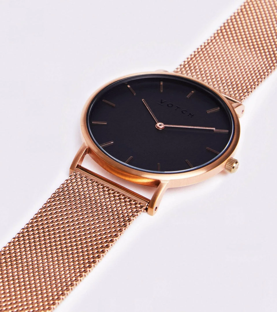 Dial Colour:Â Black with brushed rose gold indexes and hands