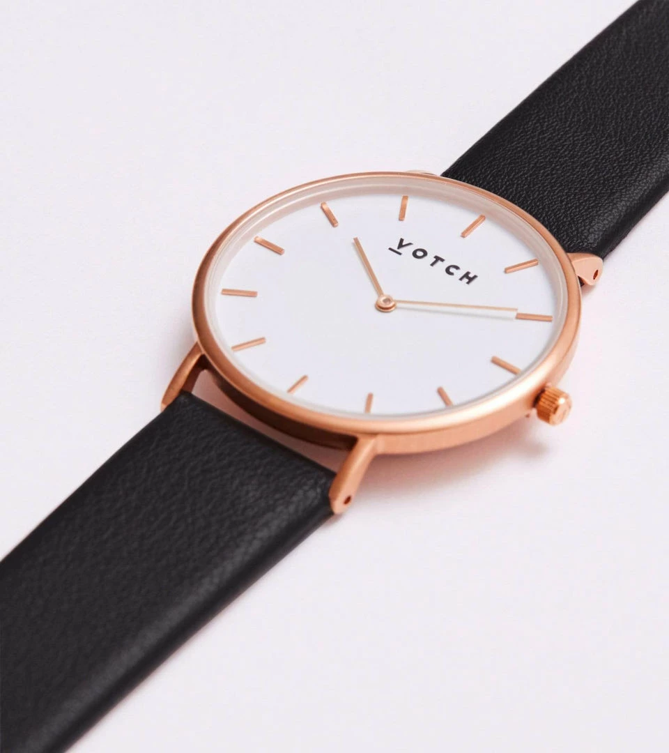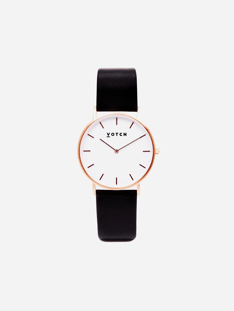 The Votch launch collection combines classic style and design across every timepiece. Each watch has a 38mm case with a vegan leather strap that will arrive to you in its own eco friendly felt pouch and box.
