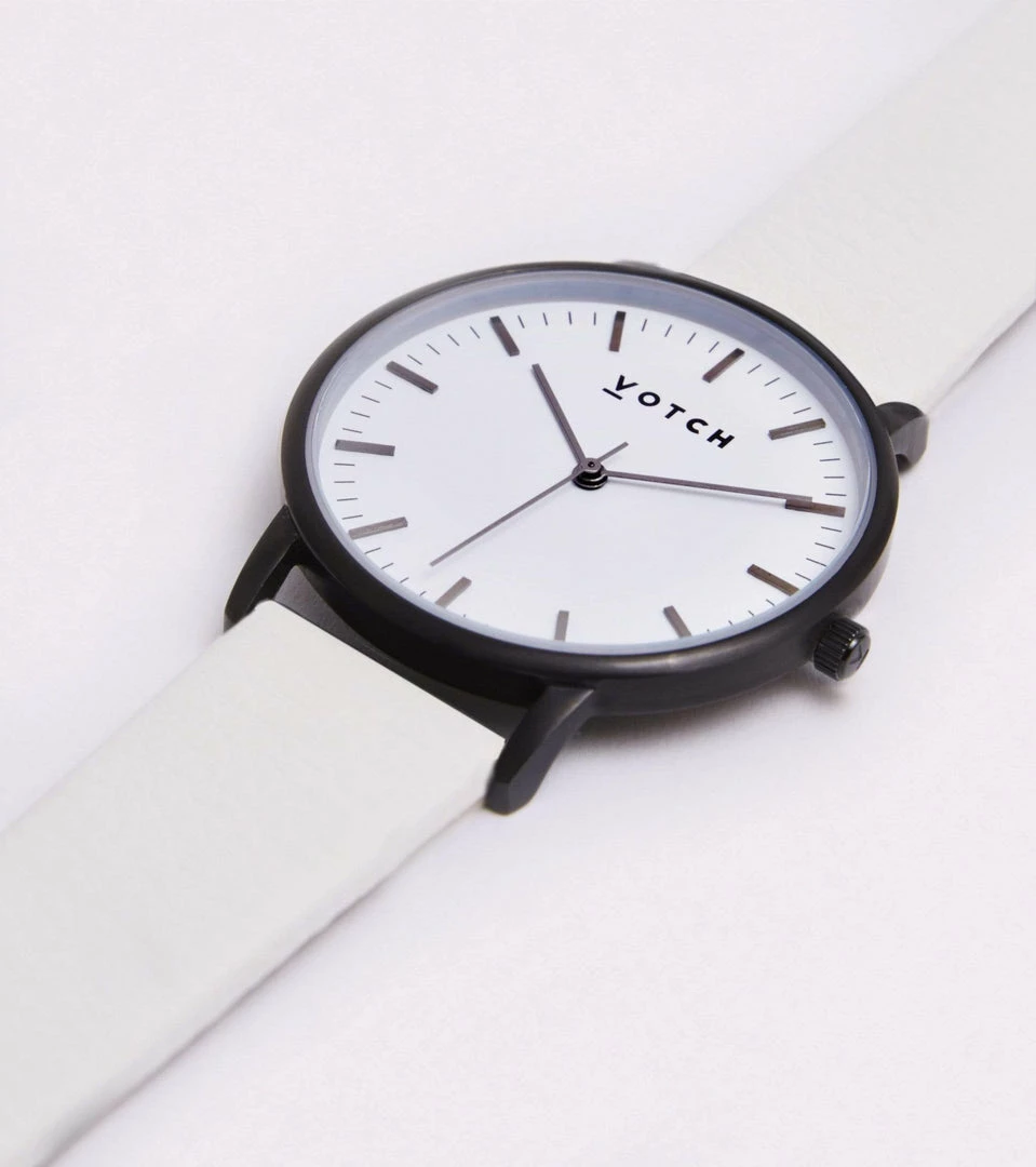 This smaller 36mm collection comes with a 3 hand Japanese Quartz movement and Votch’s signature brushed metal casing. All watches are fitted with quick release straps that are made of highly durable, vegan friendly leather and are easily interchangeable. The strap materials are free from PVC, heavy metals, flame retardants and have no added antimicrobial chemicals. They are produced with low VOC emissions and also incorporate recycled and renewable content.