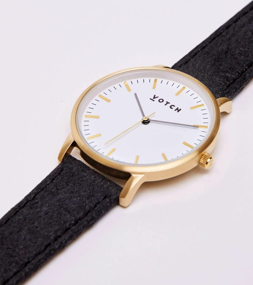The new, smaller 36mm collection comes with a 3 hand Japanese Quartz movement and Votch’s signature brushed metal casing. All watches are fitted with quick release straps that are made of highly durable, vegan friendly materials and are easily interchangeable. The straps on this Votch are created from Piñatex, an innovative and sustainable fabric created from pineapple leaf fibres. Piñatex is a by-product from the pineapple harvest and provides additional income for the farmers growing this wondrous fruit. No extra land, pesticides or fertilisers are used in the production of Piñatex, meaning these straps are not only good for animals, but for this beautiful planet we call home too.