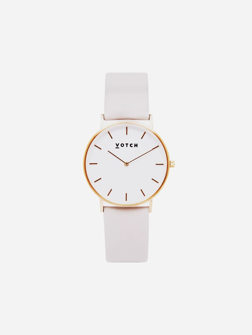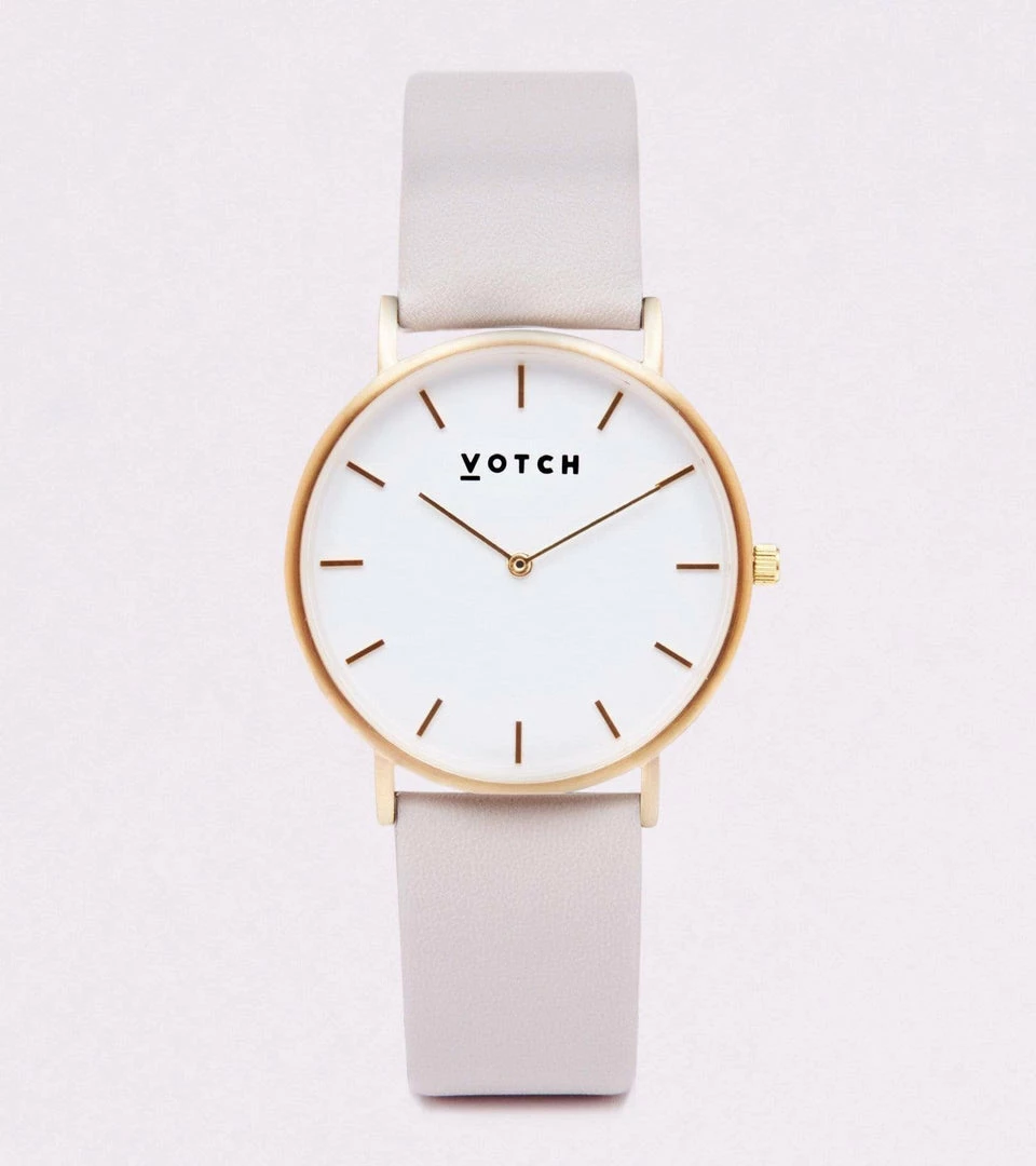 The Votch launch collection combines classic style and design across every timepiece. Each watch has a 38mm case with a vegan leather strap that will arrive to you in its own eco friendly felt pouch and box.