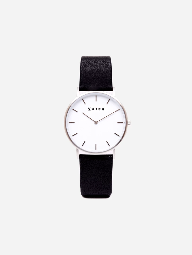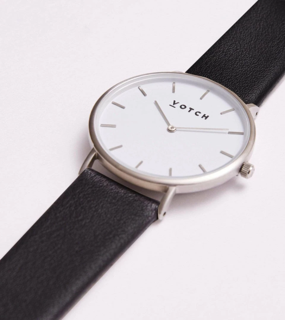 The Votch launch collection combines classic style and design across every timepiece. Each watch has a 38mm case with a vegan leather strap that will arrive to you in its own eco friendly felt pouch and box.