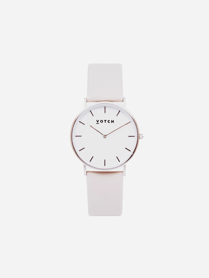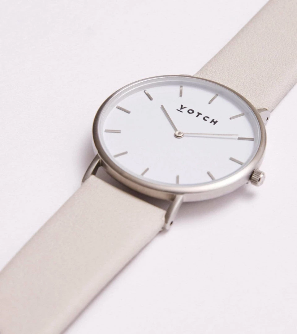 The Votch launch collection combines classic style and design across every timepiece. Each watch has a 38mm case with a vegan leather strap that will arrive to you in its own eco friendly felt pouch and box.