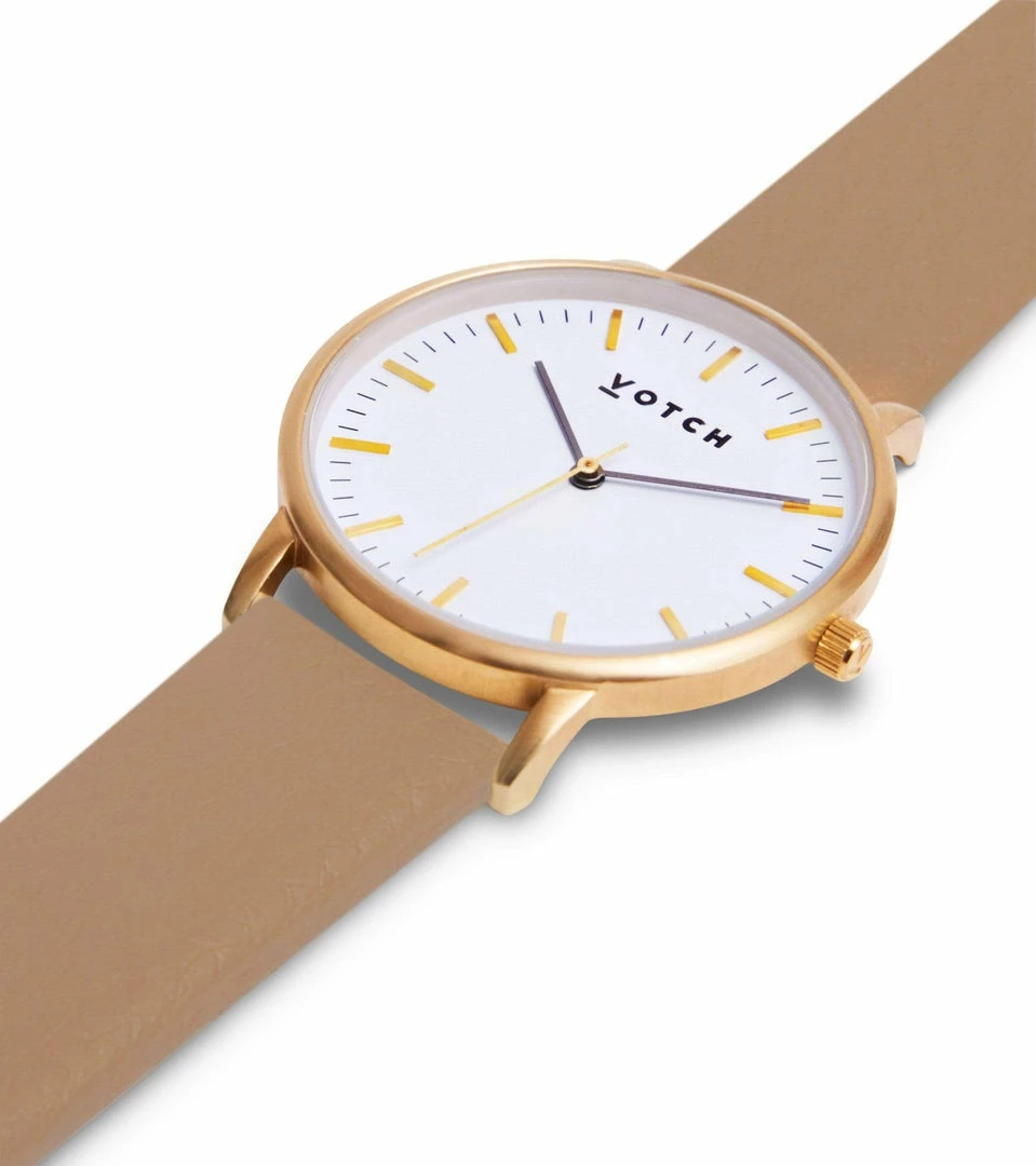 This smaller 36mm collection comes with a 3 hand Japanese Quartz movement and Votch’s signature brushed metal casing. All watches are fitted with quick release straps that are made of highly durable, vegan friendly leather and are easily interchangeable. The strap materials are free from PVC, heavy metals, flame retardants and have no added antimicrobial chemicals. They are produced with low VOC emissions and also incorporate recycled and renewable content.