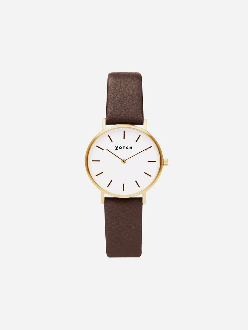 The Classic Petite collection combines classic style and design across every timepiece. Each watch has a 33mm case with a vegan leather strap that will arrive to you in its own eco friendly felt pouch and box.