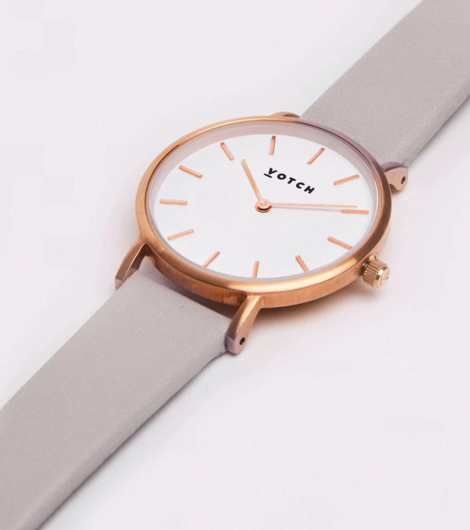 The Votch launch collection combines classic style and design across every timepiece. Each watch has a 33mm case with a vegan leather strap that will arrive to you in its own eco friendly felt pouch and box.