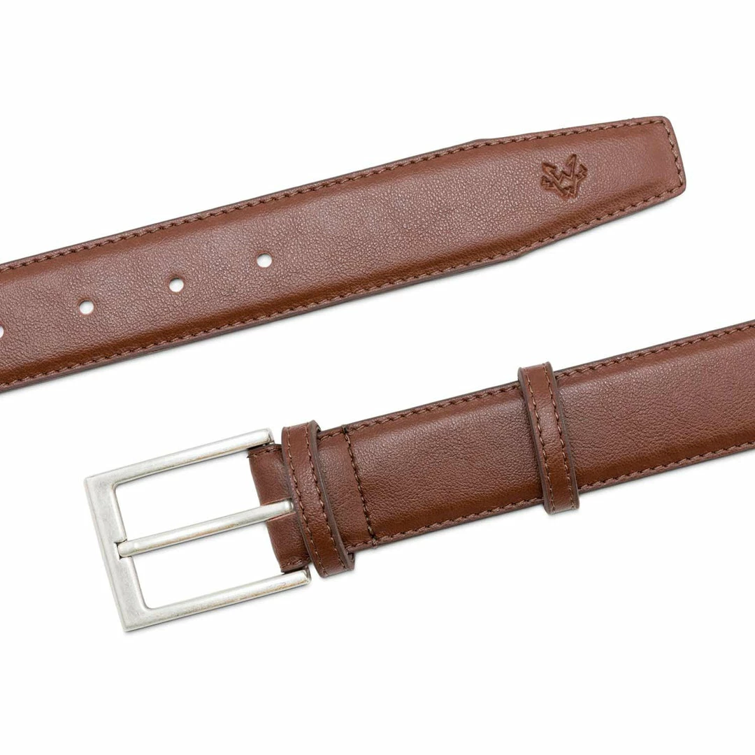 Handmade in a traditional three-piece construction, the Watson & Wolfe Miller vegan belt in Oakbark brown is made in exactly the same way as an animal skin belt, but 100% cruelty free. Each belt has three layers, a vegan nubuck base, a lining and a top layer of hard wearing microfibre vegan leather. All three materials have been bonded together and securely stitched for extra durability and longevity.