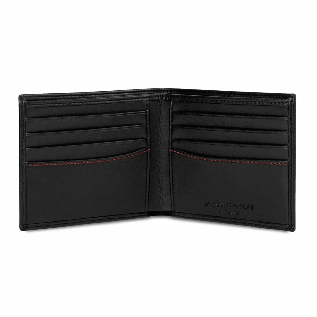 This vegan bifold wallet in black is handmade with high quality eco vegan leather. The base of this innovative material is made from non-food grade corn, and the final material contains more than 50% plant content. The corn is from a renewable source so the material has a much lower CO2 footprint and is more environmentally friendly than a regular vegan leather. On the top there is a layer of PU to provide benefits such as water, stain and scratch resistance.