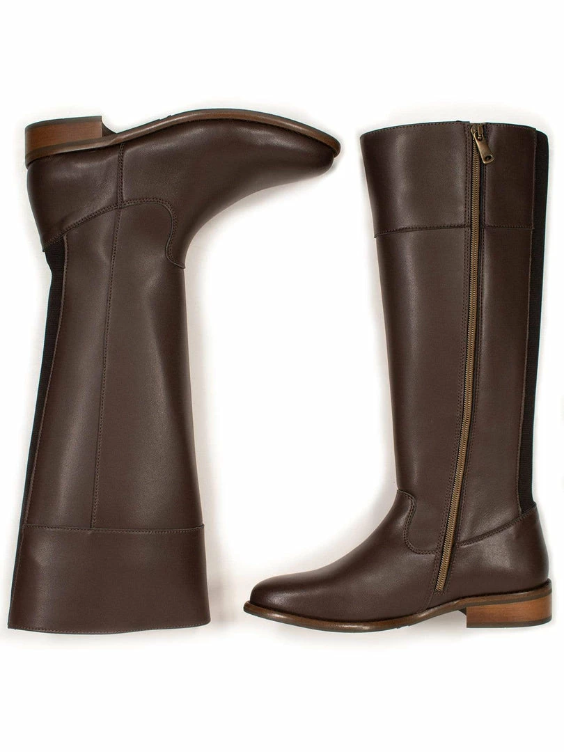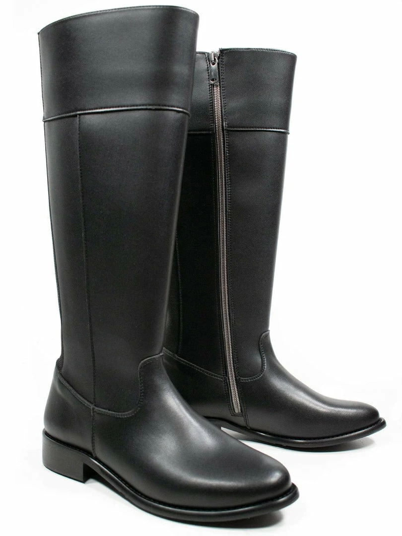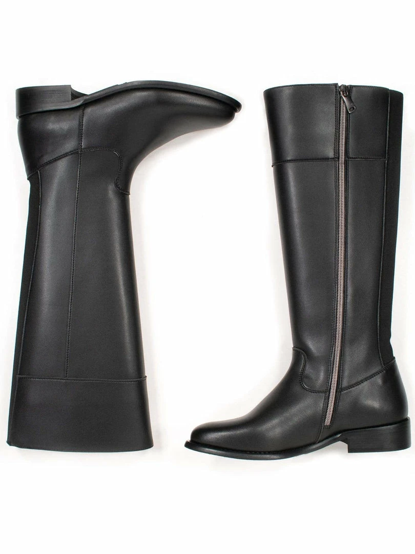 These beautiful vegan knee high boots are created with breathable and water resistant Italian vegan leather. The leg fit is snug and the boots hug you thanks to the elasticated panel running the full length of the back of the boot. This also helps the boots breath, keeping your legs and feet cool. The boots have two types of super soft vegan suede fully lined on the inside for a luxurious feel against bare skin or trousers. Features top to bottom inside zips allowing to slip on and off easily.
