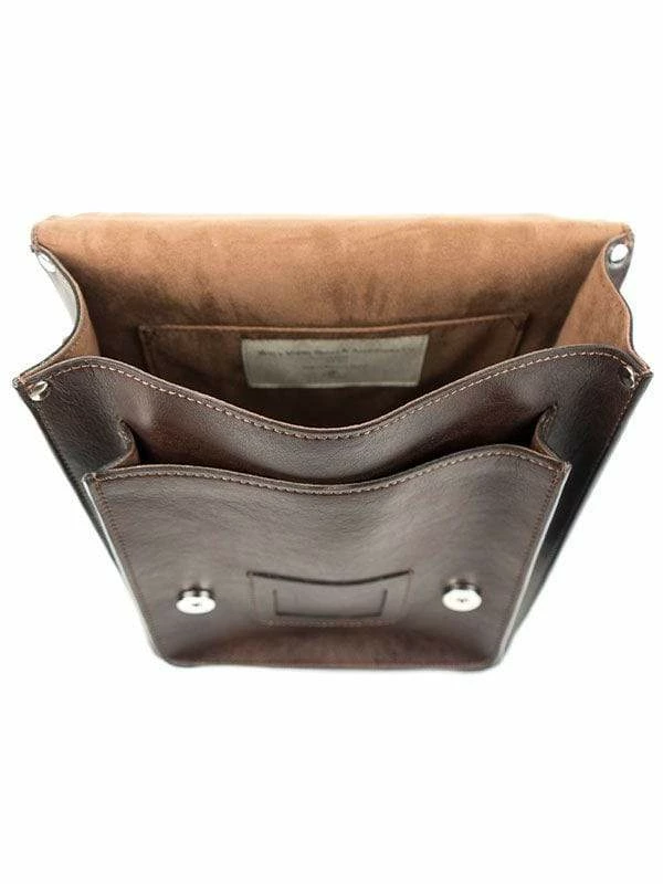 Undo the front buckles securing down the front flap or just pull on the quick release magnets hidden underneath