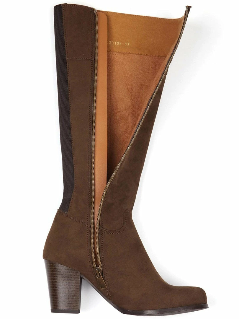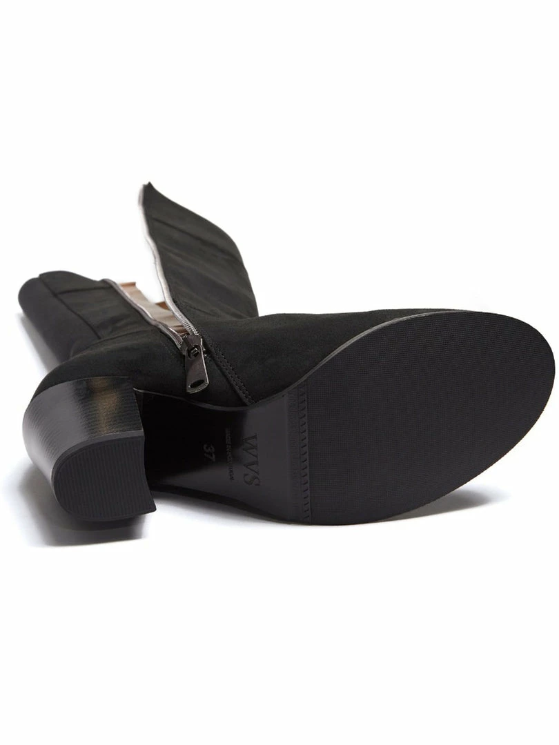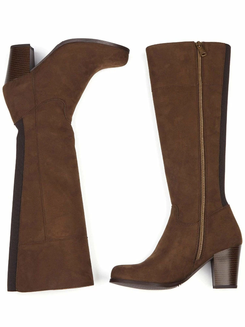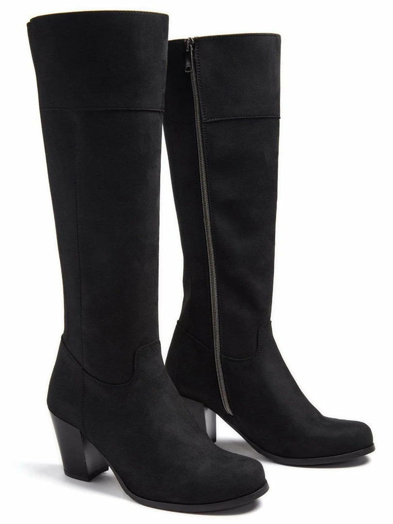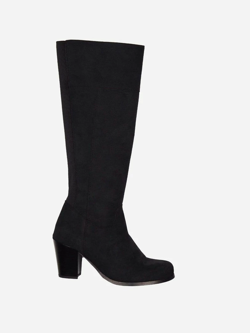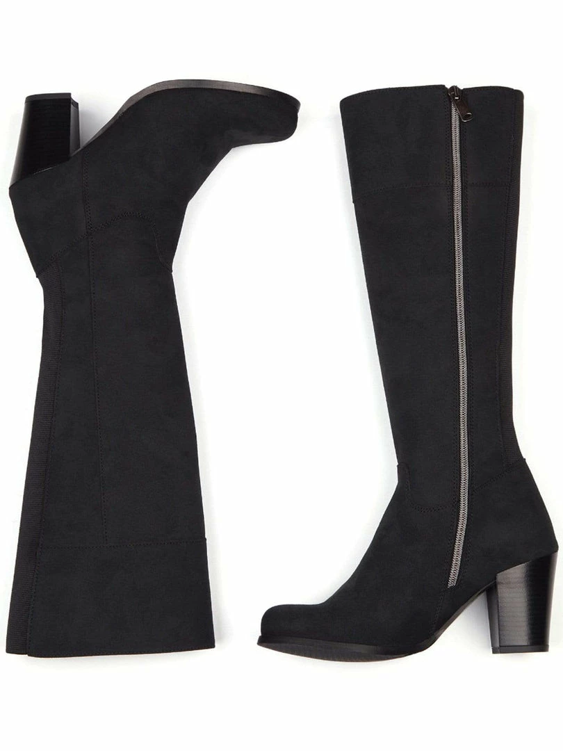 These beautiful vegan knee high boots are created with breathable and water resistant Italian vegan suede. The leg fit is snug and the boots hug you thanks to the elasticated panel running the full length of the back of the boot. This also helps the boots breath, keeping your legs and feet cool. The boots have two types of super soft vegan suede fully lined on the inside for a luxurious feel against bare skin or trousers. Features top to bottom inside zips allowing to slip on and off easily. Â