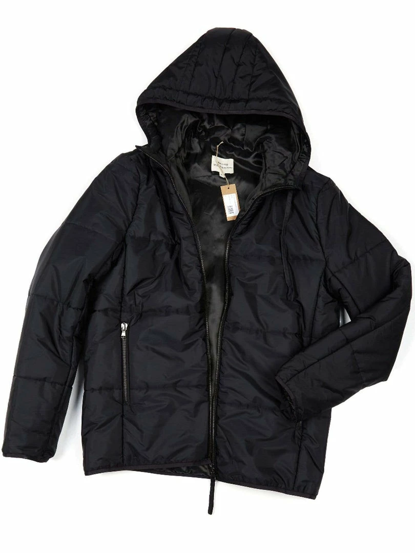 Ethically made using vegan sustainable materials, this jacket was created to keep you warm and dry through the winter. The inside is insulated with 100% recycled polyamide padding that has been produced in Italy. The material has a matte finish with just a little sheen, it feels substantial and it will not rip or snag easily. The hood is generously sized so it will easily slip over and rest on your head. You can pull on the drawstrings to tighten it around your face in harsh weather.Â