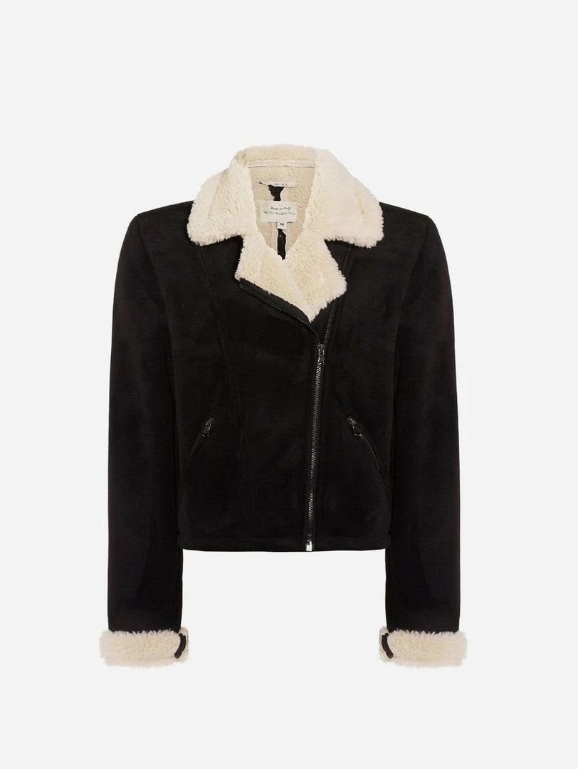 WVS have take their Biker Jacket and created a version for those colder days, when you just want to be close to deep, cosy and soft recycled vegan shearling. It has been cut with a heavier weight Italian vegan suede that has a rougher, more traditional feel than their usual suede. This material has been bonded to recycled vegan shearling (made in Italy made from 100% recycled polyester) to create one piece of material that flows and moves with you as you wear it.
