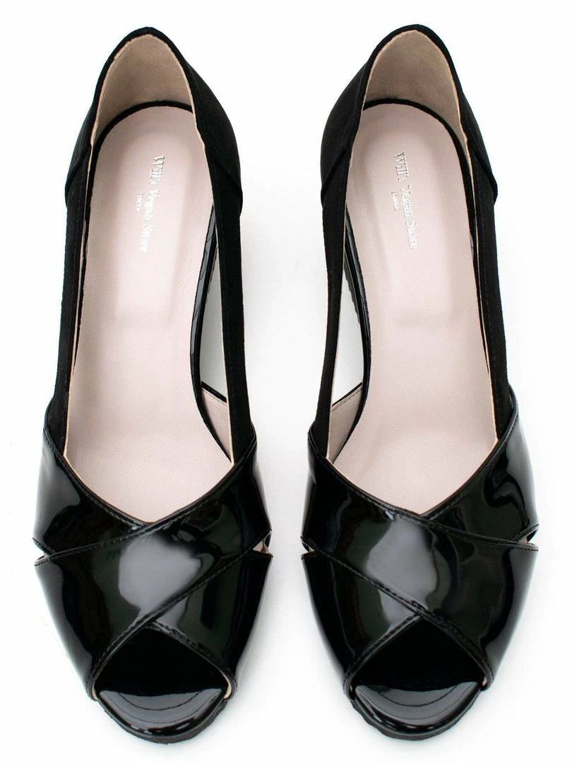 - Upper: Soft vegan suede (PU) and patent vegan leather (PU) with matching insole trim